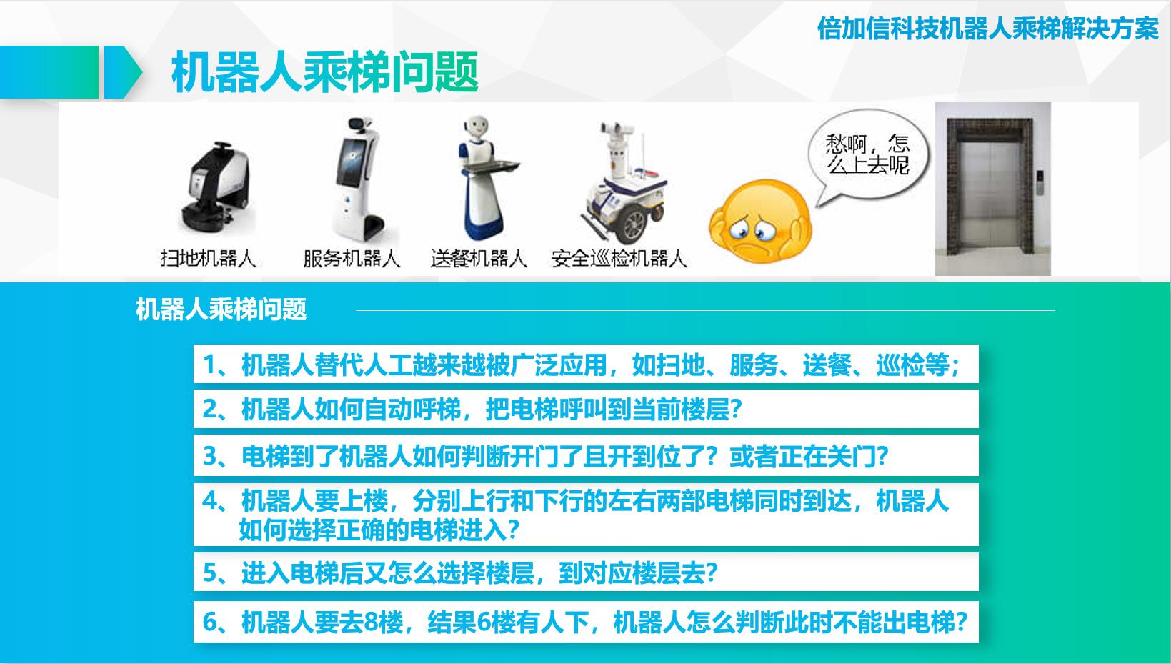 機(jī)器人乘梯:機(jī)器人可以通過與梯控系統(tǒng)通信,機(jī)器人在電梯上自由通行。