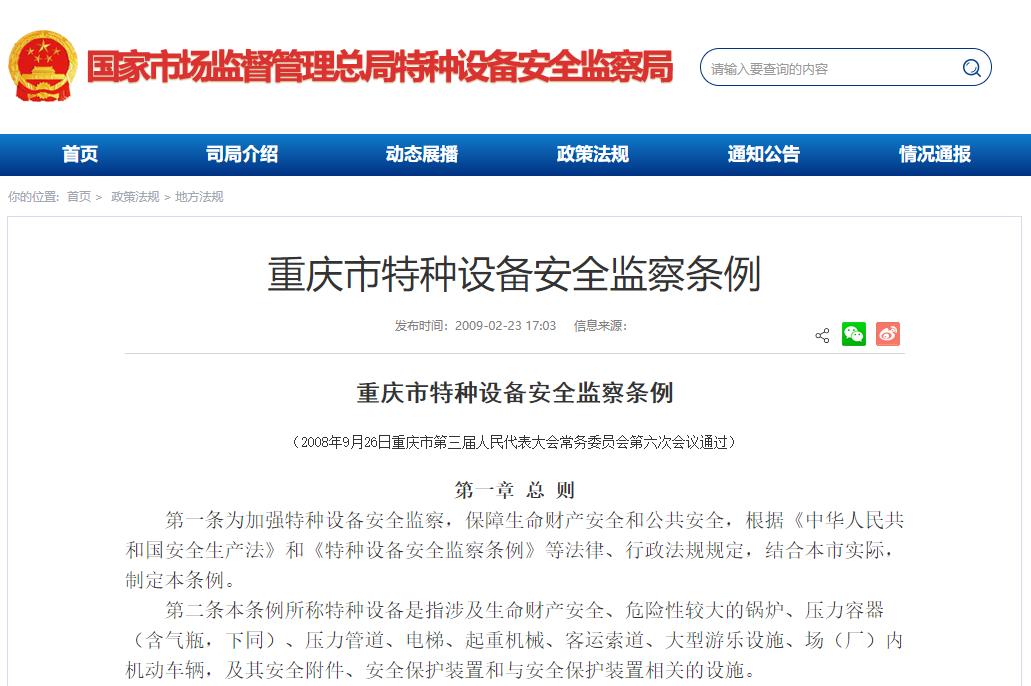 《重慶市特種設(shè)備安全監(jiān)察條例》2008年9月26日重慶市第三屆人民代表大會常務(wù)委員會第六次會議通過