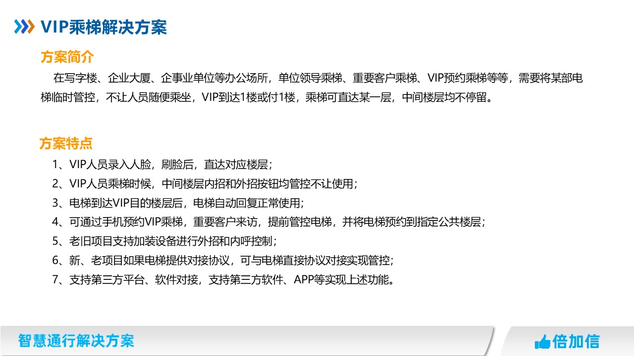 4、可通過手機(jī)預(yù)約VIP乘梯,重要客戶來訪,提前管控電梯,并將電梯預(yù)約到指定公共樓層;
