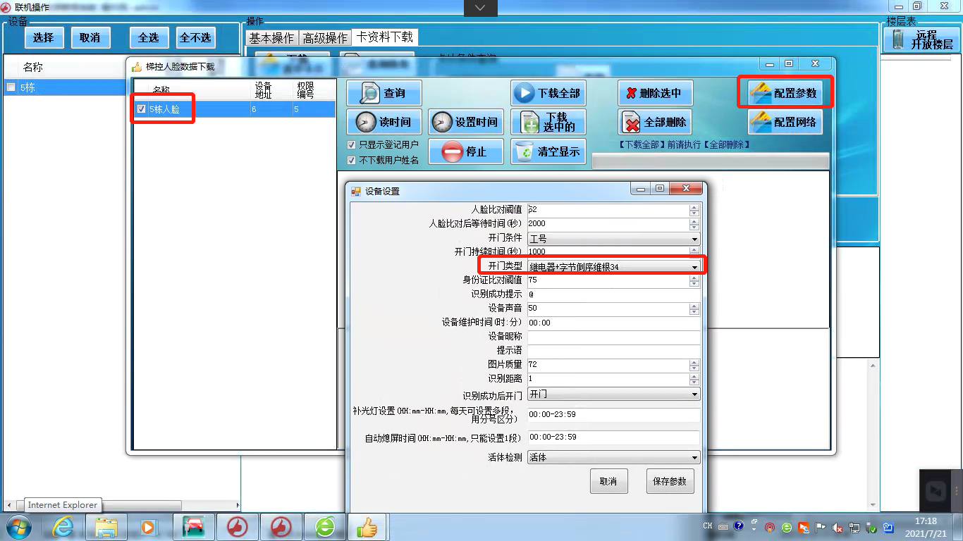 3、人臉綁定的卡號(hào)也需要下載到梯控主控制器中。